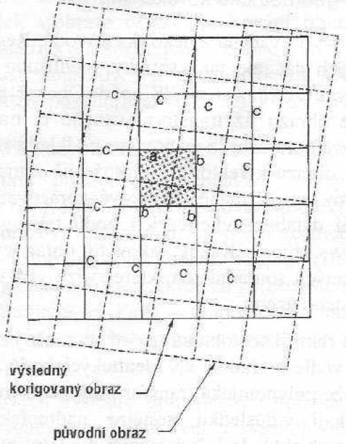 transformace DN hodnoty každého pxelu z původní souřadnicové soustavy do nové, až po rektifikaci